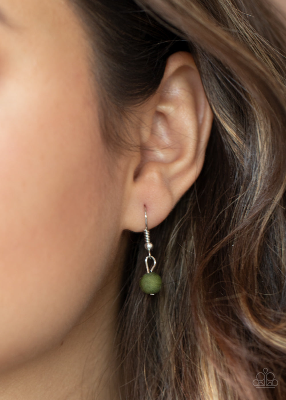 Dotted with a Military Olive stone, a dainty silver leaf charm joins a lifelike silver feather charm at the bottom of a lengthened silver popcorn chain, creating a whimsical pendant. Features an adjustable clasp closure.
