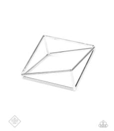 Exaggerated silver triangle frames connect at their edges to create a geometric bangle with three-dimensional drama.