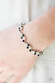Glassy black and white rhinestones are pressed into classic silver settings, creating glittery frames. The glowing frames delicately link around the wrist for a timeless look. Features an adjustable clasp closure.