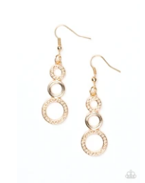 Alternating in glittery rhinestones, shiny gold circles gradually increase in size as they connect into a bubbly lure. Earring attaches to a standard fishhook fitting.