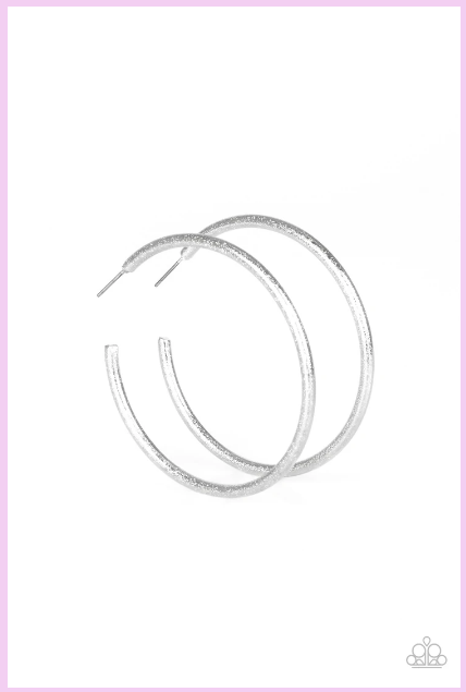 Delicately hammered in sparkling silver textures, a glittery hoop curls around the ear for a classic look. Earring attaches to a standard post fitting. Hoop measures 2 1/4" in diameter.
