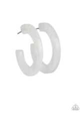 Featuring a smoky white finish, an opaque hoop curls around the ear for a colorfully retro look. Earring attaches to a standard post fitting. Hoop measures 1 3/4" in diameter.
