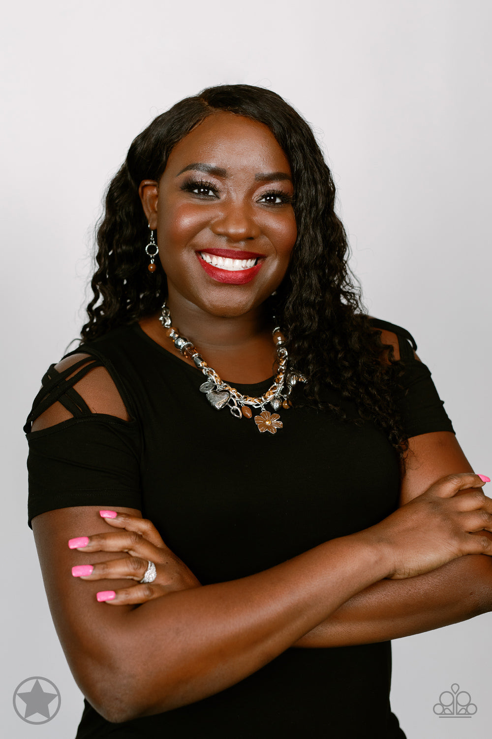 Brown and ivory cording is braided through a chunky silver chain. A unique variety of charms decorate the piece including a delicate flower and a heart inscribed with the phrase "With All My Heart" on one side and a short bible verse on the other that reads, "Love the Lord thy God with all your heart. Luke 10:27." Features an adjustable clasp closure.